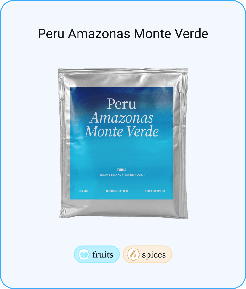 • Peru Amazonas Monte Verde — яблуко, волоський горіх, копчена груша