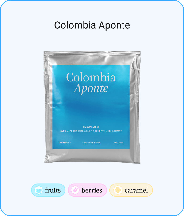• Colombia Aponte — ваніль, тростинний цукор, темний виноград